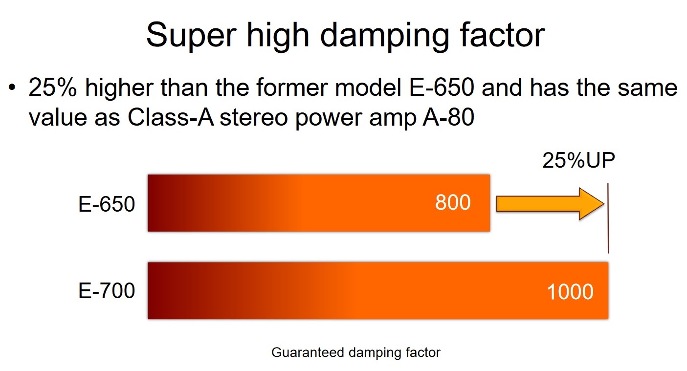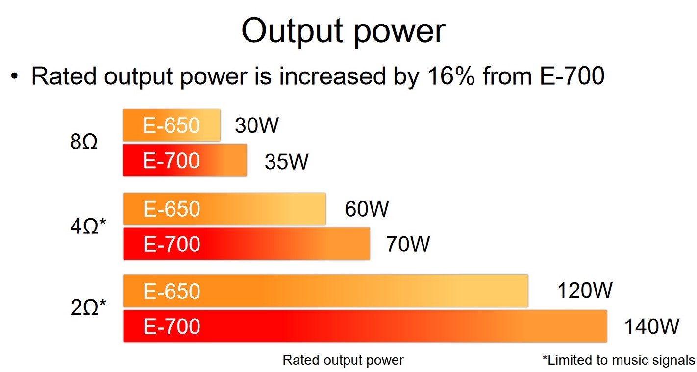 Accuphase E-700 skiljer sig från föregångaren så tillvida att effekten ökats från 30 till 35 watt i Klass A, den har fått slutstegsteknik hämtad från A-80 vidare har den blivit tystare i bakgrunden samt 25% snabbare.